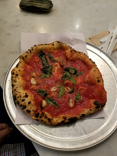 The Margherita pizza is a genuine Naples pizza! Unlike pizza in the states, this pizza is watery from the fresh ingredients. Great tasting pizza! (I suggest keeping away from the salad pizza as it is not the same dough as used in the regular pizza) Its also too bad that there is no place to sit as the pizza steams when in a carry out box....