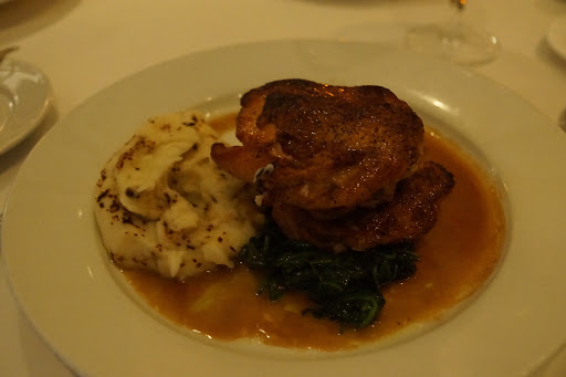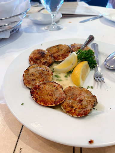 Jumbo shrimp cocktail, baked clams and fried calamari to start. All were fresh, and tasty. I shared the sliced porter house for two. The steak was prepraed properly, with perfect temperature, an excellent char, and the perfect amount of seasoning. For sides we ordered the homefries, creamed spinach, mashed potato and sauteed mushrooms. The homefries were wonderful and the mashed were light and creamy. The creamed spinach was heavily over-salted, and didnt stack up to some Ive had at other steakhouses. The service was all male, wearing traditional white dress shirts with aprons. The dining room is large, and elegant. The servers were knowledgeable but not quite as polished as some of the competition. Thats why I can only give Benjamin a 4 star rating. Overall the meal was fantastic, and I would definately return. As far as steakhouses outside Manhattan/Brooklyn are concerned, this place is as good or better than anywhere else you will find.