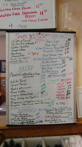 Pizza is great and their regular menu is pretty good too. Same waiter has been there for years. Corny sense of humor and seems to want diners in and out even when the restaurant is not busy. Its a quirky place if youre going to use the table service. Chicken Marsala is very good as is their shrimp scampi. Ample Parking, open 7 days. Closed over the Labor Day weekend.