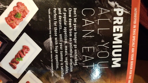 This is a BBQ place where you order pre seasoned meat or veggies and grill it by yourself on the small round grill. If you order a lot of different things the staff will bring it in in couple of plates at a time so you dont have to rush. There is a public parking garage close-by that allows paying for parking via an app. Best time to visit is during happy hour when you get discounts on BBQ and drinks. If you never been to a Korean BBQ place before, it is best to go with some one to have been to one. It is a little different from typical restaurant an you need to know what to get and how to grill it, as well as what sauce to use. Best is to stick to sirloin beef.