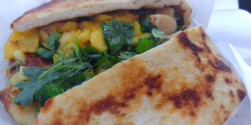One of the absolutely BEST sandwiches I have EVER had in my life!!! And that was just one of their many options. So the place is a little hole in the wall joint but those I have found are some of the best places to eat at. I had the Jamaican Jerk Chicken Sandwich on their long home cooked bread. Some of the best bread I have ever had with a sandwich. The ordering process behind this place is very unique. You pick the type of bread (round, long, or flat), and then the meat which they cook in house including the pastrami. The type of meat can change from day to day. Then you pick the combo of ingredients that they have named on the big board. There is something like 20 or 30 different combination of toppings. I had the mango salsa with cilantro and think there were a couple of other toppings on it. Either way my sandwich was unbelievable. I was left wanting another because my co-worker had the pastrami on flat bread toasted and he said it was the most phenomenal pastrami sandwich he had ever had. You cant miss this if you stop in White Plains. When I get back it is the first place I will go.