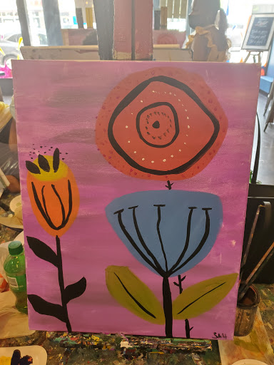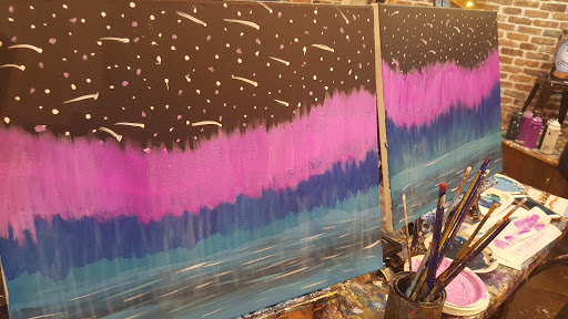 my friends took me here last night for my birthday, and i had such a blast.. we were treated very well by all staff, especially the bartending artist Enrico, who was courteous, attentive, and friendly... the instructor went a little fast for my liking, but she did keep apologizing and explaining it was due to the rapid pace the paint dries, and it was necessary for blending purposes... we werent discouraged from doing our own thing on the canvas, which i definitely appreciated... the house red wine was delicious, as were the appetizers... overall, the experience was excellent, and as i said several times last night, i would love to go back again to do another piece!
