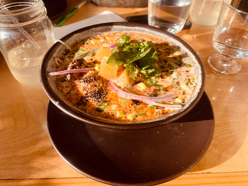 If someone had told me that a guy from Slovakia along with his Czech fiancee and some of their friends could make delicious Thai and Vietnamese food, Id laugh pretty hard. But thats what you get here in this restaurant. Definitely filled with hipster overtones (everything in mason jars) but the food is great and the atmosphere is also. Im always comforted watching the owners eat the same food they serve customers and this was what happened here. The pricing isnt that bad, the neighborhood is decent and you wont be disappointed.