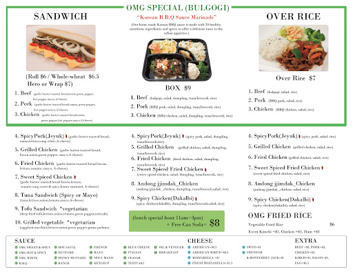 AWESOME korean lunches and heros. Try the spicy pork or beef bulgogi heroes! You wont regret it!