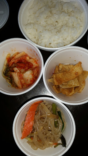 The food here is the best Korean food Ive ever had. Its so much healthier, bigger portions, and nicer employees than the Chinese place right next to it. Highly recommend everything on the menu, because Ive had almost everything on it. Start your meal off right with a cup of hot Rice Tea and finish it off right with some Red Bean Ice Cream for dessert.