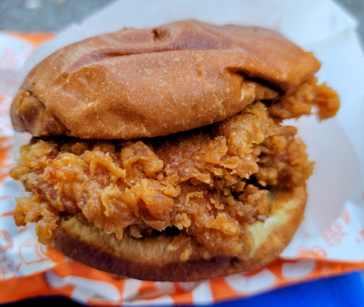 Spicy chicken is not spicy, sides and biscuits are great though!