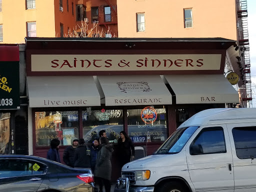 Saints and Sinners is a great place for food and for drinks, but not at the same time. Come to the bar and prepare to be assertive to get their attention, although once youre taken care of, they dont forget you. If you sit in the back to dine in there limited space youll enjoy fun irish food, however the transition to the bar is too dramatic--whereas the dining experience can be quiet and relaxing, the bar can be tense if the already too limited space of the centralized bar is part way to capacity. I will keep going back there for their fish and chips and a pint of Guinness, but not at the same time anymore.