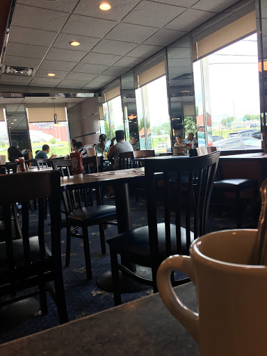 The waiter was Was friendly but didnt give adequate time to look at menu. I ordered a turkey burger and I enjoyed it. Food here is good. Atmosphere is okay. Not all staff were friendly. I was able to see a few staff Members rolling their eyes when they saw my friends and I laughing. DO NOT ORDER DESSERT. We ordered strawberry shortcake, cheesecake, apple pie ala mode, brownie ala mode. Disgusting quality dessert and not fresh at all. Dessert was very bad.