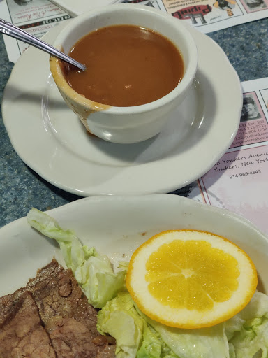 I have passed by this diner hundreds of times going back to when Empire Casino was Yonkers Raceway but never stopped in to eat until this year. Ive always admired the nostalgic neon & bulb sign and am glad that the food matched up with the ambiance of the diner. The fried calamari I had was perfectly breaded and lightly seasoned. The service was swift and polite and the owner/manager made sure to ask us how everything was and we exchanged small talk while paying at the front register. Small details like this keep customers. Their desserts looks AMAZING... gotta go back to get a slice of the chocolate cream pie!
