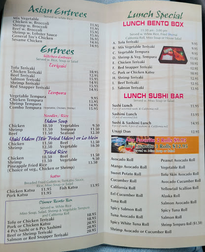 This place is okay. Not much worth a revisit especially if you are a real sushi lover. The rolls are over packed with rice and very big. They dont have much of a variety of special rolls The habachi tasted stall the food does sit out. They do charge for what u dont eat. They fountain drinks even had a weird taste. I did have the spicy salmon best roll on my plate