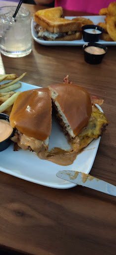 A friend and I were looking to eat somewhere we had never been before. Most of the reviews we saw were decent so we tried it out. We arrived and had to wait 25 minutes to be seated. We didnt mind that wait but after being seated, it took an hour and 10 minutes to get food. My burger was over cooked and more onion than meat, but after waiting so long, I ate it anyways. Our waitress had way too many tables and we had to wait another 20 minutes just to get our checks, the waitress didnt leave a pen so we had to ask the manager for one. After 8:30, the hostess kept telling guest coming in that it could be a long time before they could be seated, basically turning them away. Overall, the burger was decent, but Red Robin wouldve been a better choice and worth the extra $2 I wouldve ended up spending.