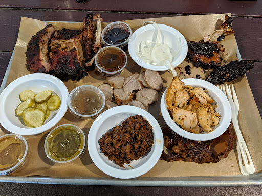 The blueberry chipotle and pineapple habenero sauces on their smoked ribs is a show-stopper. The smoke flavoring is not over-powering so you really get to enjoy the flavor of the pork. Had the corn pudding and the coleslaw as sides, both were outstanding. Local beers and sodas are available to drink.