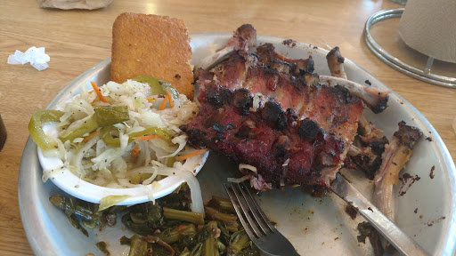 We ordered the full slab blueberry Chipotle as well as the full slab of brown sugar dry run. Definitely worth the detour coming thru. A touch of spice with the right amount of sweet without being over whelming. The corn pudding was yummy, cheese grits tasty and the greens were flavorful. The smokey potatoe salad had a touch too much smoke but tasty none the less. The brisket had a nice flavor just a bit dry though. Would recommend the ribs to anyone. A must stop in ur travels