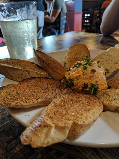 The garlic knots were slightly burnt, but definitely not the worst. The pizza on the other hand was awful. It had the absolute worst dough which had the consistency of wet cardboard and no flavor, the sauce taste cheap, and the cheese taste like plastic and over all tasted like a very cheap frozen pizza/school cafeteria pizza. Not to mention waitress was lazy... Place was basically empty yet took quite a while to receive our pizza as we watched multiple to go orders leave with their delivery drivers. Was disappointed because you expect if anything they could get a simple cheese pizza right. Will never be back..