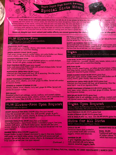 We, a group of 11, arrived around 7 pm for the dinner. At the first sight, it was all good when you see people waiting outside - the food must be really good... 2 hours wait time - no table for that many - we said fine, will walk around Asheville downtown and come back. In at 9 pm, menu had few options, but the waitress listed many of them were sold out.... you must be kidding... That was not the end of it though... ordered some food, waited for another 30-45 minutes, and then came the news that they ran out of couple of items we ordered... Finally, I gave up... I shared the food that was lucky enough to reach our table... some were really good, but Kale Pakora was so salty... My friends who were with me make much better Bhel Puri and Chaats... We just wanted to have a good time eating out in a nice town.... but turned out to be a big disappointment... Its time restaurants really understand what it means to get 4 stars...