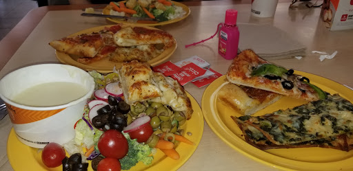 This location always has hot pizza and a crisp salad bar, even later in the evening.