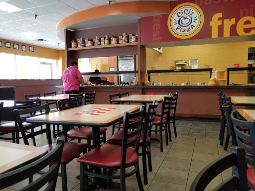 I decided to visit this CiCis since the one in Hendersonville, NC was shut down. I was really appalled by this location. Dirty floors when you walk you step on food. Filthy plates. The first plate I picked up had chunks of chicken and the next had ham dried on it. So good luck finding a clean one. The pizzas were ordinary and unappetizing especially the buffalo chicken.! The bar stayed empty most of the time. The dessert is so average you can make boxed brownies at home. I would not pay to eat here ever again.