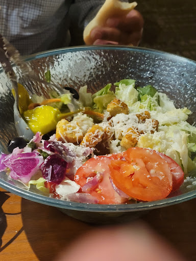 The staff were knowledgeable and helpful, but nothing else was reason enough to return. We were rushed to order, then when we did finally get our breadsticks & salad/soups, the food was right behind it. The breadsticks were hard & dry though well seasoned... The salad was as expected, but the soup was horrid. It was appalling to the eye, with oil & cream separation obvious, big ugly chunks of scalloped potatoes, and blobs of greens. The potatoes were too large to fit into a spoon/bite and the soup was extremely salty. I understand why they rushed the food out behind it... The salmon was good, but we also ordered the Tour of Italy. The lasagna tasted sour & had a strange color to the cheese, but the Alfredo was ok. The 3 item on the dish, chicken parm, was a slap in the face. It was a frozen breaded chicken patty that likely sat under heat too long as it was extremely dry. The beading was hard, and the chicken inside had no moisture or flavor. There was a pitiful attempt of tomato chunks & cheese on top. I was rather irritated that an $17 plate consisted of frozen inedible food. I will not return, and wouldnt recommend going there for your meal.