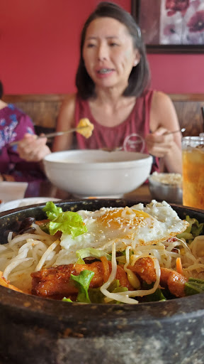 The good parts: Waitstaff was great. Podicha was great and unlimited. Seaweed salad and kim bop were good. The bad: My mom got bad bulgogi for the second time. It is too "rough" tasting and seems geared toward American tastes. It is cut thick and was burned on the pan. My jap chae was overcooked and also tasted Americanized. Meh experience when a few adjustments would make it stellar.