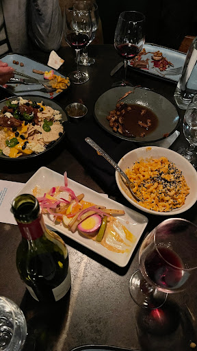 We were celebrating our 20th anniversary, we love to cook healthy and wanted something more exotic than what we do at home. The food was in the stratosphere, we started with the charcuterie plate, its best not to ask what it is made of (headcheese). I was informed everything was made in house from every part of the animal. This is what has sustained humans for thousands of years before processed garbage masquerading as human food became the norm. We complemented our dinner with a bottle of 2008 Perrin Gigondas (a soft vintage drinking perfectly well that night). I had the special featuring Black Wagyu belly steak (the Japanese use the cows for Kobe beef). This steak had the flavor, texture and melt in your mouth quality fit for royalty.