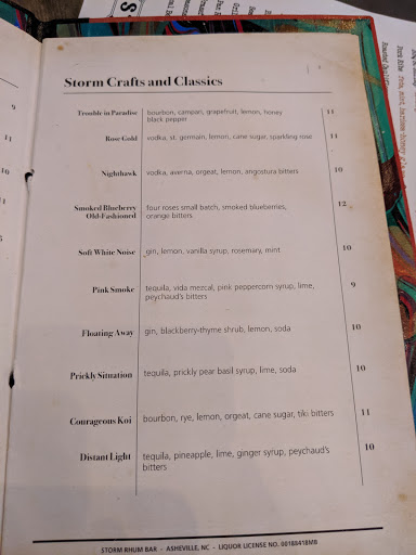 Since the first night we visited Storm nearly a year ago, my friends and I continue to come back. Being in the design industry, I fell in love with the decor and the atmosphere. It is indeed one of my favorite spots in Asheville. The staff are always friendly, smiling and the service is usually pretty quick, even when busy. In the countless times that we have been, we have rarely had a complaint. If we did, it was a rare occurrence that was promptly taken care of. Theyve even responded to some of the unique requests of my friends. The manager makes a point to greet customers and make them feel at home, which I think is something you dont always see at other venues. I have tried numerous dishes there and have always been happy. Their fries and homemade ketchup are great. I even loved the vegetable sandwich and I tried it on a whim, not usually being much of a vegetable sandwich kind of person. Their drinks are excellent. Try any of their mojitos!