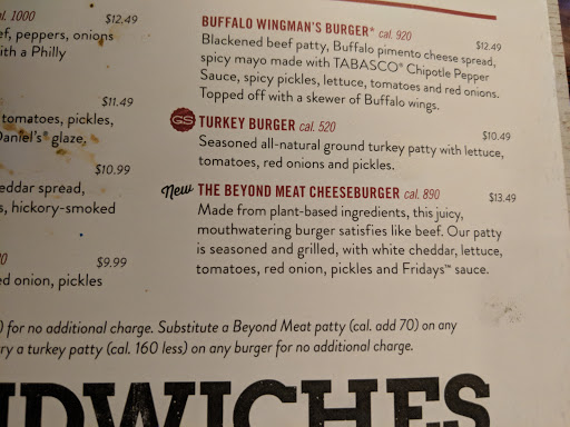 Visited Fridays for a light supper. We had a big lunch and were not very hungry so we ordered the slider appetizer instead of a meal. The food was way overpriced. 4 sliders and one beer cost over $20. The service was terrible. The waitress brought our food, sat it down, did not give us plates to eat off of, did not give us napkins and did not come back. I would not recommend this restaurant to anyone, I will never eat here again. If you want a bad dining experience this is the place! ( This was our 50th wedding anniversary - what a disappointment.)