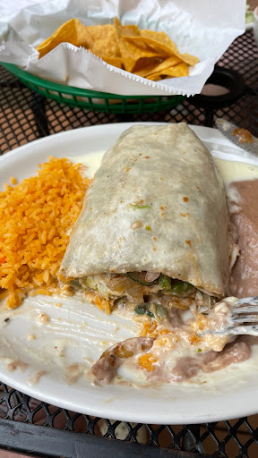 Just OK , the 10 dollar beef burritos are 80 percent onion and peppers . The remaining beef is just that unflavored kinda tough meat . The chips are decent , Its just kinda bla . The service is good and wait staff is nice and you get a decent amount of food . But again its not that great of quality