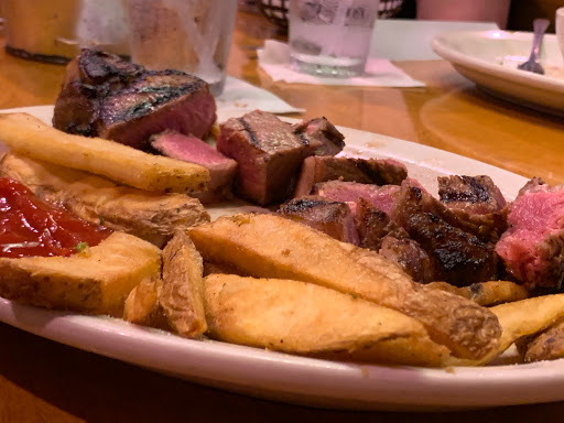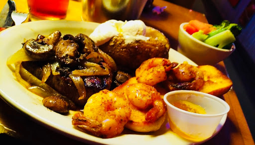We went here to eat a good dinner but what we ended up with was not food although it appeared to resemble such. Delmonico steak was overcooked full of fat and grissle with no flavor. The center sirloin came out bloody ordered med rate sent back returning burnt on outside still rate garlic mashed potatoes no garlic Chopped steak was overcooked so bad could not chew it Manager was not concerned about it offer ed nothing but a sorry hope you come back. Btw no aarp, no veterans discount except Mondays. Prices are high sevice is bad mgmt does not care Eat at waffle house is a lot better and it wont cost $ 100.00 like it did us