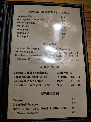 Went here recently with my my teenage son for a couple burgers with fries to go. Was rather appalled at the basic burger price of 9.50 and with upgrades to Rockafella and Patty Melt the bill came to over $23. (was actually charged .10 cents for lettuce!) Had we stayed there to eat I would have pointed out to mngr that the menu said burgers are cooked medium unless otherwise specified-which we wanted- because they were both well done and dried out! It was 10:30 am and there were only 2 other people at the bar so clearly not busy... Definitely wont go there for a meal again. We were both disappointed. Should have waited the extra half hour for Universal Joint across the street to open-always satisfied with their burgers!