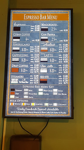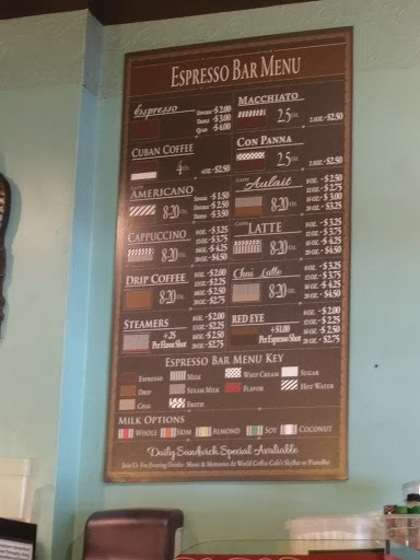 Cuban coffee was not prepared correctly. Tasted too sweet because they used the wrong sugar and I dont think it was hot enough. Also it was way over extracted making it bitter. Not to mention places with tip jars are extremely tacky. There was also a dog INSIDE of the coffee shop, gross!