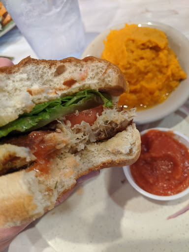 Walked right in and got a table. Fun, and cute crab decor all over. Waitress was very friendly and helpful. We started with the fried green tomatoes as an appetizer, which were pretty good. The local draught beer selection was not my favorite, but my husband enjoyed a flight to sample. The fish tacos were fantastic and the quinoa salad was the best Ive ever had. It was very good food and the prices are nice, too.