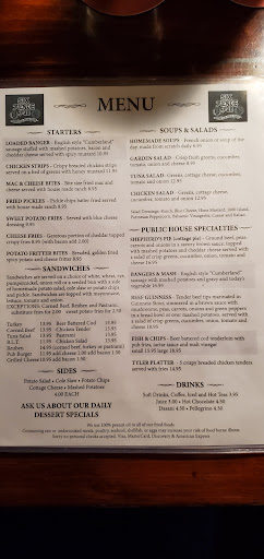 Awesome! Awesome! Awesome! Really good English-pub grub and drinks. Great atmospheres, both inside and out. Their Shepherds Pie was from heaven. The salad was fresh and crisp, and the burgers juicy and flavorful. Golden-delicious grilled cheese sandwiches, the fries were also crisp on the outside and soft and fluffy on the inside - generous portions. I thoroughly enjoyed their English beers, Id highly recommend the Speckled Hen - a smooth beer with a think delicious top.