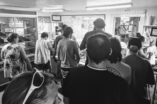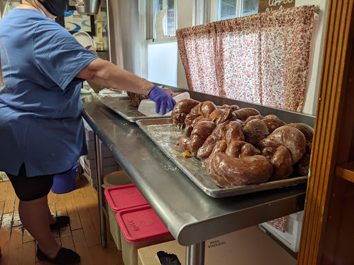 Cute little place. Some say it is run down I say its well loved. This place has a line out the door almost the whole time they are open. It is well worth the wait. Everything is made from scratch and delicious! We get the biscuits, croissants, donuts, donut holes, and of course the famous apple ugly. All super delicious and not over priced. Must go to this place when tou visit.