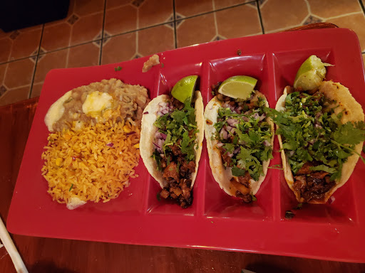 The decor was pretty standard but they did have some nice woodwork on their railings and other places on the upper floor. There wasnt much room for people to move in and out of the building though and everything seemed a bit cramped (Yes, skinny kids were even sliding sideways passed each other to get through). When we were getting seated we were placed at a booth that had about six inches between your chest and the table and then the next booth they took us to had almost two feet between us and the tables edge. The server tried to sit us in that tiny seat first and when it didnt work, she just motioned for us to sit in the next one that was too large. It would have been better if she had realized that the spacing was off and we just needed to scoot one of the booth seats back a little. We would have gladly helped but she didnt say a word. It was pretty awkward. The salsa was extra spicy, I think they had added some jalapeno seeds, but both the queso and salsa seemed like the basic kind you get at most places. When the food came out, we were pleasantly surprised that it was not as typical of food like the chips and dip were. The rice was still about average but the refried beans seemed like they were cooked better than most places. The beans were less like a paste and had more chunks of actual bean in them. They were seasoned well and had butter and cheese mixed in. I ordered the Tacos Mexicanos Asada and they were FANTASTIC. The skirt steak was seasoned and cooked to perfection and the cilantro and onions were fresh and tasty. I threw some of the spicy salsa and some of the rice on mine to kick it up a little bit but it was excellent on its own as well. I think maybe grabbing the food to go would have been better. Because the servers lingering upstairs that kept glancing over at us was a bit weird, and the bathrooms were really unclean. Overall, I had to give them only three stars because of the unclean bathrooms and how the booth situation was handled. I dont know if well go back next time were in town but I really hope we just caught them on a bad day because those tacos were absolutely delicious. Visited the weekend of: 6/17/17