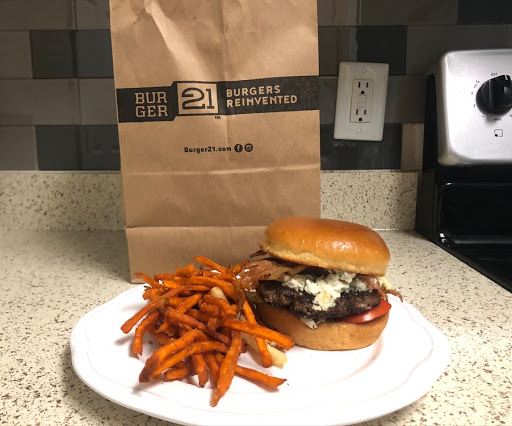 One sign of a good burger place is that they know how to make a medium well done burger. 21 Burger achieve that mark. I order a Cheesy Burger and half/half fries to go. First want to note that the togo order was perfectly hot. By the time I got home it was at hot as if I was eating at the restaurant. As mentioned, the cook understand what medium well done burger means. The burger was not raw or cooked well done. It was a perfect med-well done with just a hint of pink in the middle. With the toasted bun, the burger was perfection. The half/half fries are regular fries mix with sweet potato fries. They give you a lot! Honestly this could be shared between two. The regular fries were ok. a little stiff than what I wanted and just a hint of salt. Some may like that, but not for me. The sweet potatoes on the other hand was awesome. Tinder and with a sweet taste to them. The staff there were very friendly and brought my order out fairly fast. Think next time I will to take my time to eat there instead of ordering out. So an overall good experience at 21 Burger