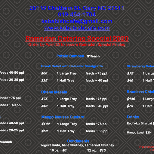 I visited Cary for 2 weeks for business. I needed to find a nice halal place to eat and I certainly found it with Kababish. The service was awesome at each of my visits, which at times was daily. I visited in excess of 10 times. Food was awesome, really traditional Pakistani food with the right amount of spices in it. Could not fault the place at all. Every single dish I tried was perfect and would highly recommend. I have posted a lot of photos, each photo is of each dish and meal. It shows consistency with the food and quality. I had certain dishes on multiple occasions and consistency was amazing. A must taste visit whilst in the area!