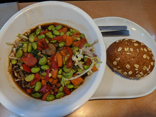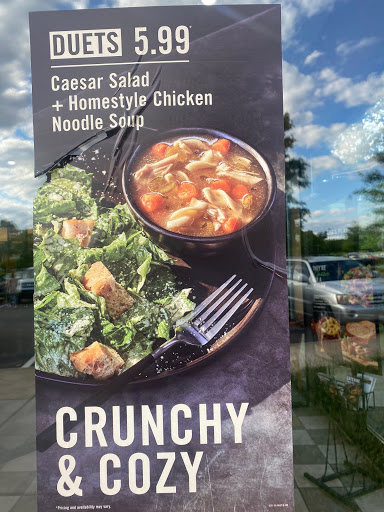Recently, my overall experience at this location has become very disappointing. My orders have been prepared wrong, and very often they are out of the soup that I want. Their sanitation score is not stellar either. The other night I ordered a tomato mozzarella flatbread, and chicken noodle soup (You pick two). Well, they were out of the chicken noodle, and my second choice - black bean. So I got two flatbreads, or one whole. Each half had one small slice of tomato, and one small slice of fresh mozzarella. Maybe a quarter teaspoon of pesto, and some wilted arugula. Ten dollars for that?? Give me a break! You can get a great sandwich anywhere for less than that. Prices are going up - quality of service is going down.