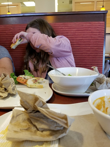 First time using the kiosks to order. While this feature is convenient there is still something to be said about human interaction in a place of business. We only talked to Andrea the girl who brought us our food. And by we I mean us and not her. She didnt say a word to us and even slid our trays to us. I get it, we all have off days but at least make the effort... that makes all the difference. Besides that there food was as expected for Panera.... fresh and delicious!