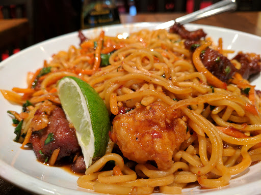 Unfortunately my first negative review of a triangle restaurant but I hope this helps some folks. I stopped eating at this Pei Wei a couple years ago because they were consistently late on my to-go orders. A co-worker encouraged me to try them again. I noticed new menu items and decided to start over. I ordered online at 11 and arrived a little late (my food was to be ready at 11:20 and I go there at 11:25). Besides 2 seated tables I was the only other person in the restaurant. The floors were sticky everywhere, especially in the bathroom. I noticed food crumbs on tables that were set which didnt have any customers yet (they opened at 11). Despite ordering 25 minutes ago, I waited another 10 minutes to get my order at 11:35. Not good, but maybe the food would be great? I ordered whats called "Japanese Steak and Shrimp Chili Ramen". My shrimp were breaded in a mushy batter, but even worse they were clumped together in chunks (like a clump of 3 shrimp fried together in the mushy batter). The rest of it would have been good although beware that these arent ramen noodles. They remind me of the rice noodles you find in microwavable meals, the ones that have a slight sweet and vinegary flavor. I dont like those noodles but some folks love them. When I saw ramen on the menu I assumed some aspect of the dish would at least be ramen influenced, but this is something else. They could have named this dish according to the style of noodle they chose, I dont understand why cover it up? I could have ordered something I know I like, like the Kung Pao. Between poor service, poorly prepared food, and a misleadingly named dish (not the staffs fault of course) it will be hard to convince me to try again there. Edit: Youve got to be kidding me. I posted this before trying the eggroll. Its completely lukewarm, not heat at all. Im actually worried to eat it. I guess I should mention the plus sides. The "Japanese" dish I got is really spicy as they advertise. Which is nice because a lot of places claim to have spicy food thats quite mild.