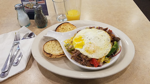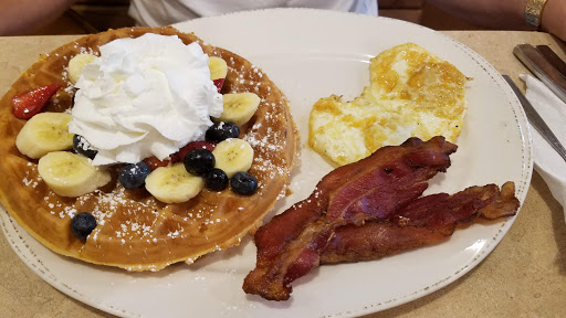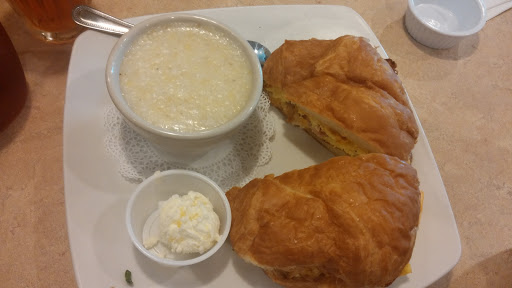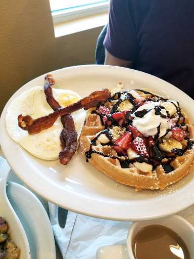 The waiter made triple sure that my breakfast croissant was written down correctly. No ham, add onions. I know they have a lot of customers with dietary restrictions, so I didnt double check. My order was wrong and I received a standard order as if the cook just saw Breakfast Croissant and went on with the day. It wasnt busy or anything at the time. The eggs werent anything to name a restaurant after. The quantity was great, but the quality was not. The waffle was soft and doughy as well. I did like the ranch potatoes, but not enough to make a return trip.