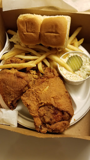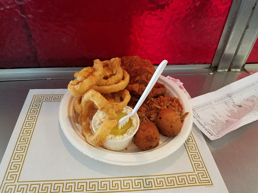 By far the BEST fried/BBQ chicken Ive ever had. Went there because we saw it on "Diners Drive-ins and Dives" and also on "The Best Thing I Ever Ate." It really was all about the chicken. For about $6 we got 1/4 chicken which is fried to perfection and then dipped into an absolutely delicious BBQ sauce (not to thick, not to thin, nice vinegar tanginess but also some sweetness from brown sugar). Came with some righteous slaw, some decent fries (didnt fill up on those) and a roll. My favorite part was finding a piece of white bread that they put underneath the chicken that sops up all the sauce (and grease) and is sinfully delicious. Throw all your health concerns out the window, eat the chicken skin and all, and get some strawberry pie for desert. (p.s. They bring you extra trays so you can place the food on your lap in the car and not get stuff all over yourself...nice touch)