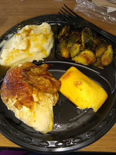 Ive eaten here many times before but tonight was my last. The chicken wasnt ready so we had to wait ten minutes for it, there was no turkey - that was a thirty minute wait - nor red potatoes. We got our order to go so by the time the chicken was ready, everything else was cold since the sides had been packaged earlier. To our further dismay, when trying to eat the chicken, it was not done so we had to discard it. All in all, a loser experience.