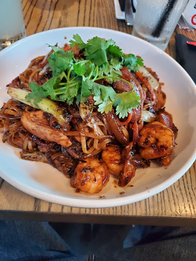 One visit and Im an instant big fan! Even from the outside, this place - with well chosen outdoor seating, a hip name, and hip lighting - transcends the ho-hum shopping mall which is its home. Inside, you feel youve stepped into an ultra cool lounge. A sit down bar is a central focus, with grand, gorgeous swoopes of curved wood overhead. Upbeat music plays, but doesnt intrude. The place oozes cool. Waiter knew menu quite well and - upon request-guided our selections. Pork Ginger dumplings were exceptional, as was the curry laska, which was an enormous bowl of delicious coconut infused broth brimming with chicken, shrimp, broth-style noodles and lots of fresh, gently steamed vegetables, all with enough heat to make you take notice, but not uncomfortably so! I will definitely return to CO.