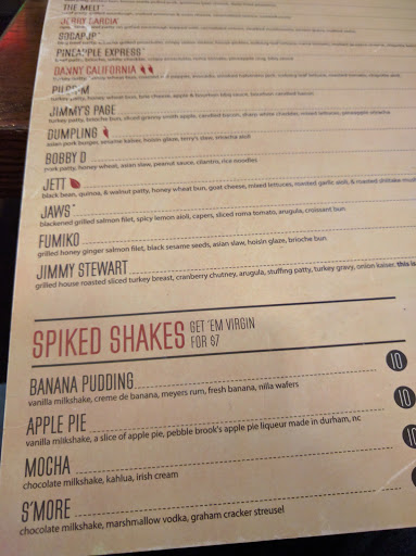 This place will melt your brain with their quality of burgers. A little pricey for a burger place, but it lives up to their tag of "gourmet burgers". Expect to pay $9-12 for most of their menu. I had the Bruiser Burger (bleu cheese, caramelized onion, shitaki mushrooms, etc.. ) and almost cried in delight after pairing it with their sweet potato tots. The classy rock and roll theme inside is well done. This all-American bar doesnt skimp on design details inside, and has plenty of bar space. Back to burgers: My fiance delighted herself with the Carolina burger. The homemade slaw and chili is fabulous and lives up to my strict standards for sandwiches that assume the name of our great state. Finally, dont miss out on their homemade mac and cheese... just trust me on this. Get this as a side or order it extra before you finish your visit.