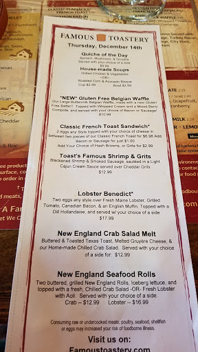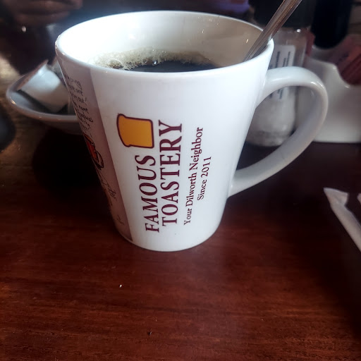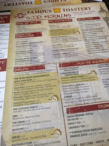 First time for me and my family at Famous Toastery, was hoping it was worth it. Ended up with a very long wait for food (50 mins for breakfast from the time we ordered), but it couldve been longer if I didnt ask for a manager (who sent someone to get our food before he came to our table annoyed which you could see as he walked up). No big apology and just assumed since our food was out all was fine. Not to mention multiple tables sat after us and they received and finished their food by the time we asked. The food was over cooked, dry and cold (at the time we werent going to complain with a hungry 3 yr old and pregnant wife). Left still hungry and a 10 minute wait to pay (cashier was overwhelmed with limited help). Only good thing was the server Cory (who was not even our server and was the person I asked to get a manager) helped bring the food, apologized for the very long wait, and tried to acknowledge my kid who was trying to be patient. I hope this helps them figure out what they can do better for their customers.