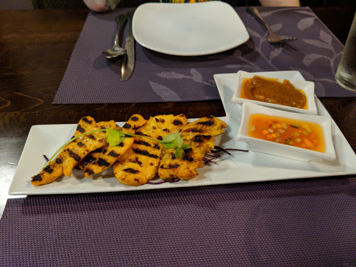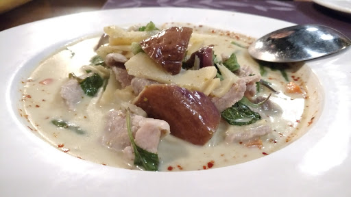 This place can be a little confusing to find because you cannot park where you can see the restaurant. You have to park on the side or back of the shopping center and walk around front to the entrance.. Nice ambiance. Cool lighting.. Our server was friendly and knowledgeable. We stuck with Thai dishes this time but will probably try Korean dishes next time.. The Green Curry with chicken and lemon grass.. was excellent. Chicken slices were thin and tender. The sauce was rich in flavor but not overly thick.. Spice levels are 1 to 5. I tried a 3 but will probably choose a 2 next time.. The Pad Thai with both chicken and shrimp was also very good. The servings were plentiful so there was some to take home for lunch the next day.. A scoop of green tea ice cream for desert. We will definitely be back..