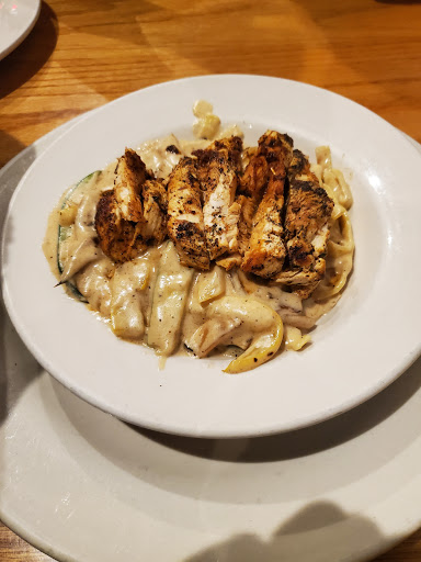 Ordered and had pizza delivered. We live less than two miles away and still the pizza sorta warm by the time it arrived. Forty five minute wait for delivery, too ( which we were told upfront). Seems a long time for two small pizzas. More importantly however, the pizza was not as good as weve had in the past from this restaurant. Chicken was dry, the crust was tough and extra chewy(which I dont remember ordering). I dont know what makes pizza one day terrible the next, but clearly theres a processing issue here. Wont make this mistake again.