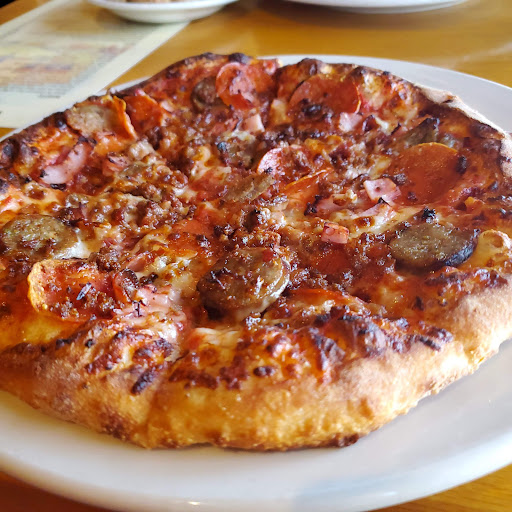 Great pizza! Its in an odd location thats easy to miss, but once you step inside this place youll want to stay. It has a great feel to it and the pizza, its great! They put a wonderful sauce on there that really finished it off. I havent tried anything else there yet, but will be back