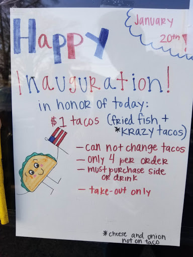 Went on a rainy Thursday for lunch. My brother got the chicken quesadilla and I got the Szechuan Salmon taco with bulgogi sauce and cactus salad. Our food seemed to take quite a while to get out, but at least we felt confident in its freshness. The quesadilla had a lot of meat in it. My salmon taco was very delish. Im still amused by the combination of Chinese/Korean/Mexican. The cactus salad needed seasoning to me. My brother wasnt too impressed with the decor/cleanliness, and I have to admit, I think they put too much into decorating it and dont pay enough attention to simple sanitation. Their sanitation rating was hidden (I LOOKED for it), our silverware was filmy and overall, it really seemed to be a dive. I dont mind dives, but the concept is to APPEAR grungy, not BE grungy. I think whatever the customer comes into contact with should be CLEAN. I looked up the rating and its a 95.5 if youre wondering.