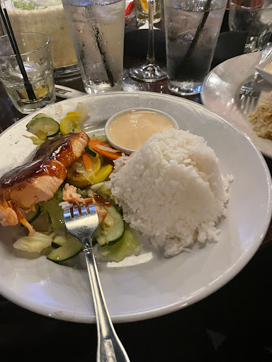 Great vibes... but the food was Terrible. Me and my boyfriend went to Nikkos on a Saturday night around 9:30pm. The energy and ambiance was superb. Great scenery and the Dj was stellar. When we sat down we ordered a Cabernet Sauvignon and a Melon passion cocktail. The Cabernet was horrid and the Melon cocktail came in a wine glass and tasted like a water down popsicle. We then proceeded to order two teriyaki dinners one with chicken and one with chicken and shrimp. It took about 45 mins before our food arrived and astonishingly the food tasted horrid. The rice was undercooked and tasted like they froze it from the night before and cooked it the next day with lots of oil in the pan. The chicken was very suspect it had a teriyaki drizzled that tasted like death and the chicken seemed as if it wasnt real. The shrimp was just plain terrible and unseasoned. We mentioned to the waitress we werent satisfied with the food and she just stared at us like a deer in headlights so we just decided to pay and write a review. We may go there again just for the atmosphere and drinks but we will not return for the food. Maybe we will have to try the sushi :)